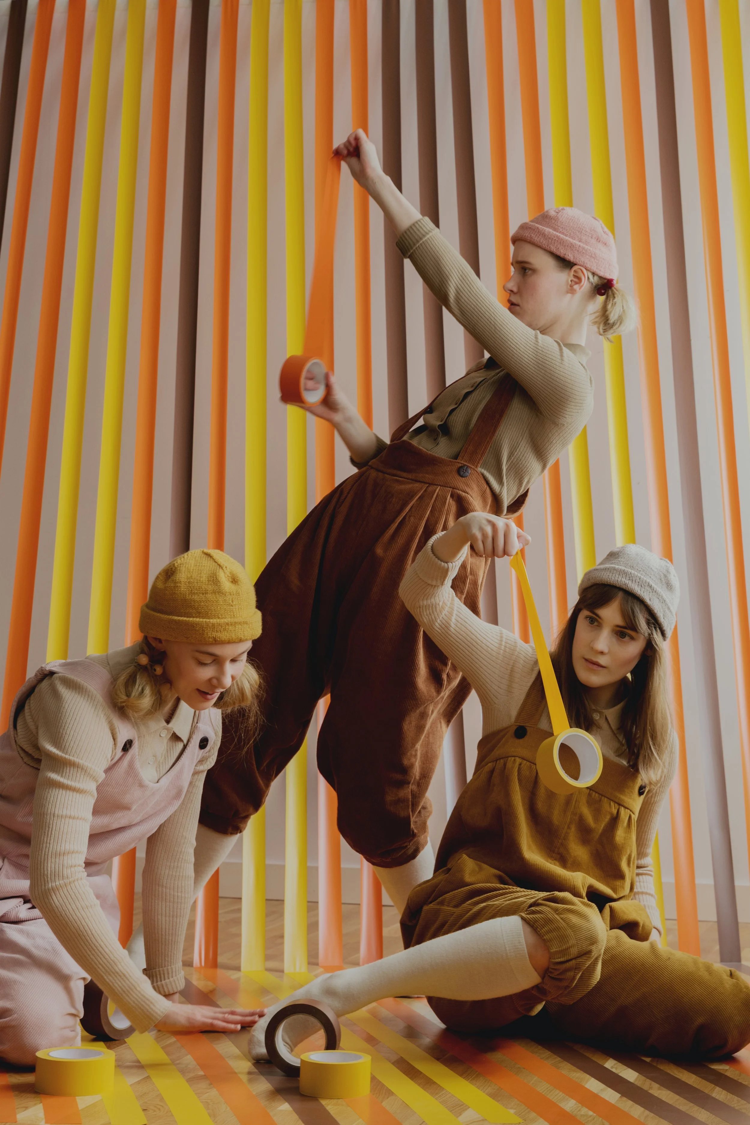 Ritsj gir publikum rom for undring og deltagelse. Etter forestillingen får barna være med å leke med teipen.
